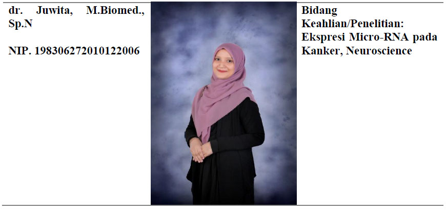 The Biochemistry section is one part of the Faculty of Medicine, Universitas Syiah Kuala. Currently, the Biochemistry Division has 6 lecturers and 1 education staff. As a part under the auspices of the Faculty of Medicine, Universitas Syiah Kuala (FK-USK), the Biochemistry Section supports and supports the vision of FK USK, namely by conducting research, teaching, and community service to participate in building FK-USK into an Excellent, Competitive, Innovative Faculty of Medicine, and Globally.