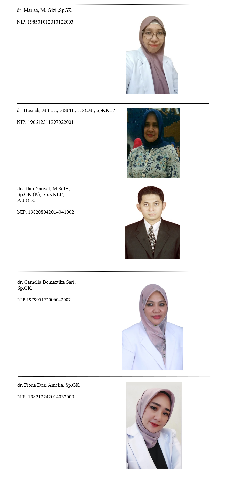 The Department of Nutrition is part of the Faculty of Medicine, Unversitas Syiah Kuala, and currently has 5 lecturers and 1 education staff. All teaching staff have master's qualifications and or specialist doctors-1. The Nutrition Science Section of the Faculty of Medicine, Syiah Kuala University is actively involved in realizing the vision of the Faculty of Medicine, Syiah Kuala University, which is to become an Excellent, Competitive, Innovative faculty through the Synergy of All Potentials for Development and Quality Improvement of Education, Research, and Community Service in the fields of Medicine, Health and Disasters at the global level in 2025. All activities carried out by the Nutrition Science Division are the embodiment of the faculty's mission, one of which is realized through the implementation of the tridharma of education.