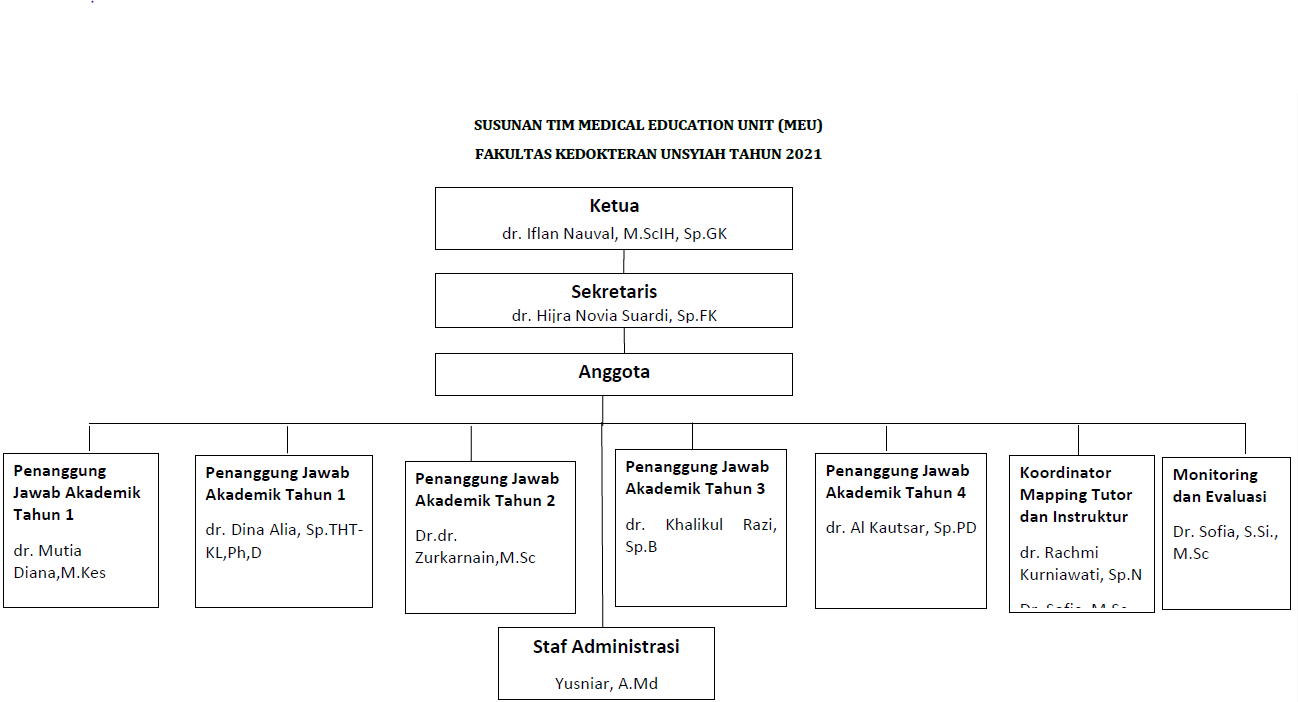 The achievement of the vision and mission of the Faculty of Medicine is the effort of the entire academic community of the Faculty of Medicine, Syiah Kuala University. Efforts to achieve that require commitment and cooperation from all units/sections within the Faculty of Medicine.
