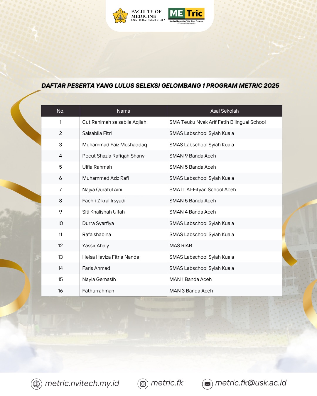Alhamdulillah, the selection process has been completed. We congratulate and appreciate our friends who have been declared PASSED AS PARTICIPANTS OF METric 2025 WAVE 1!